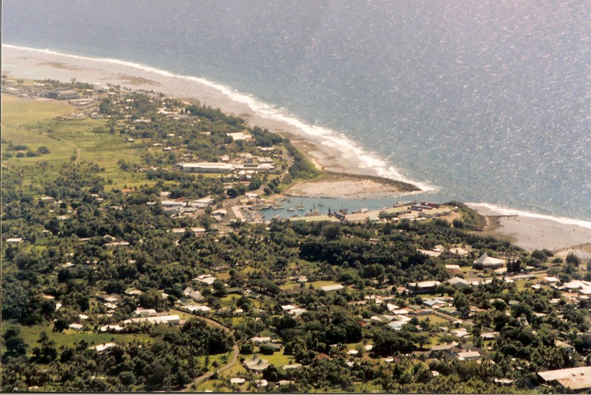 are at the quay in Avatui Harbour. The freighter is up against the wharf on one