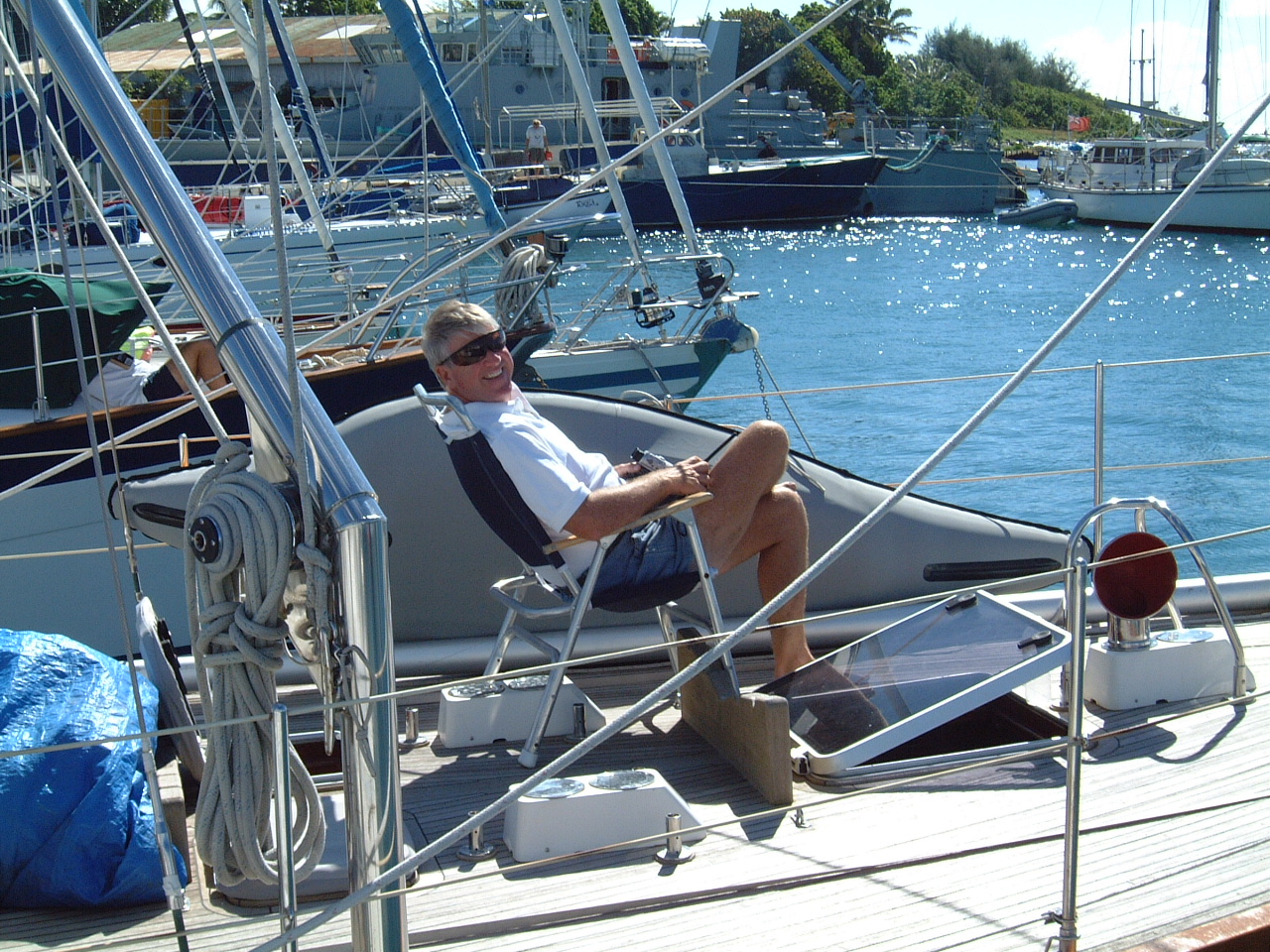 and, after four days at sea, we were ready to drop the hook. The problem was