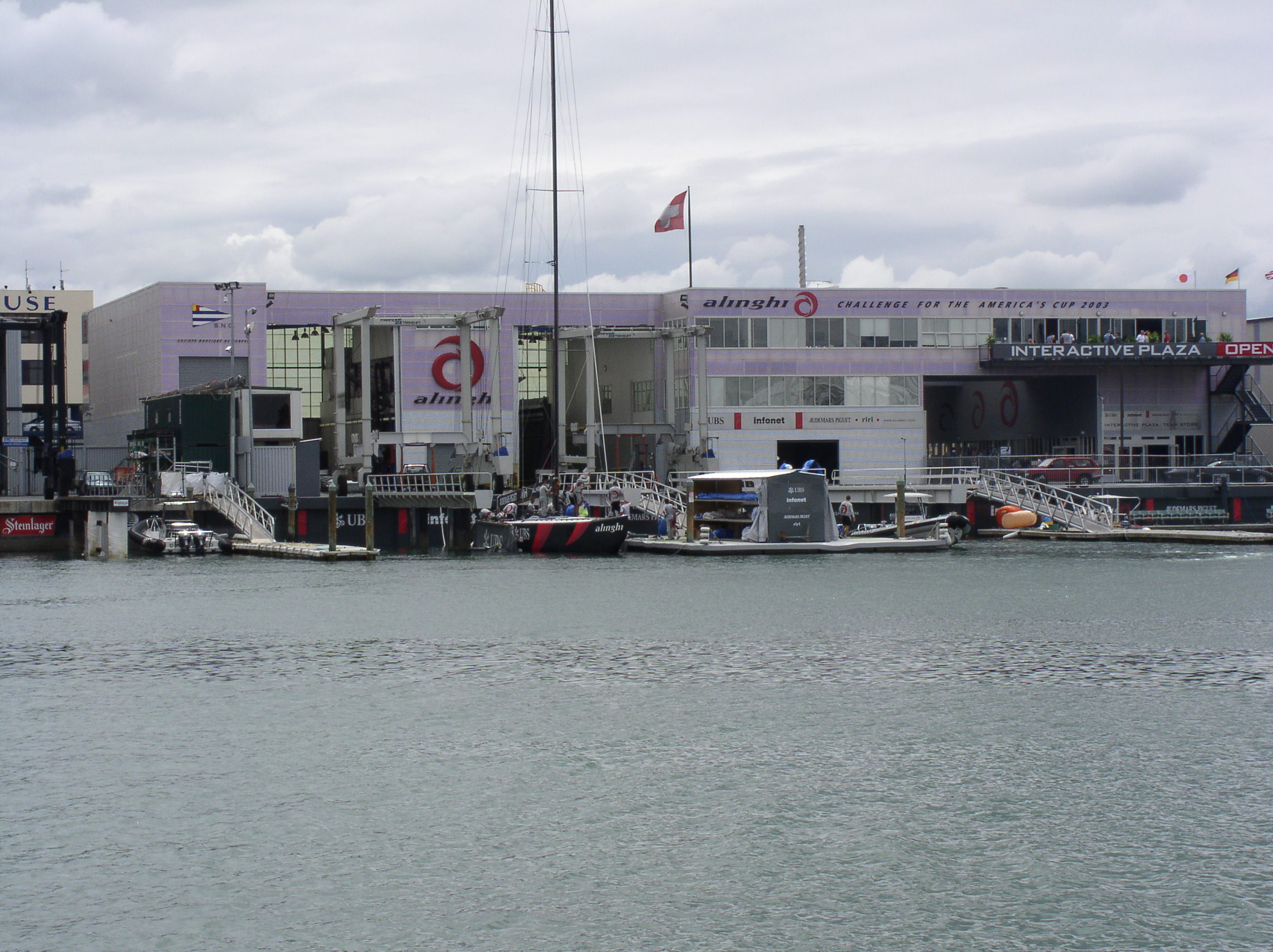 The Swiss team Alinghi’s compound. Team New Zealand returning to Viaduct Harbour.