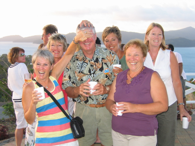 Ariana and Leslie brought the cake out, a delicious chocolate-chocolate chip cake for true chocolate lovers, whoever that might be! Fortunately, they didn't take the time to put a candle on for each year or the Hamilton Island Volunteer Fire Brigade would have had to been put on standby.